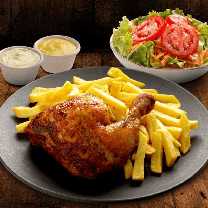 Cocinado lentamente al carbón, el pollo alcanza ese punto perfecto en el que la piel queda crujiente y dorada, mientras la carne permanece tierna, jugosa y llena de sabor. Es la porción perfecta para disfrutar una comida completa sin excesos, con todo el gusto de la brasa tradicional peruana.